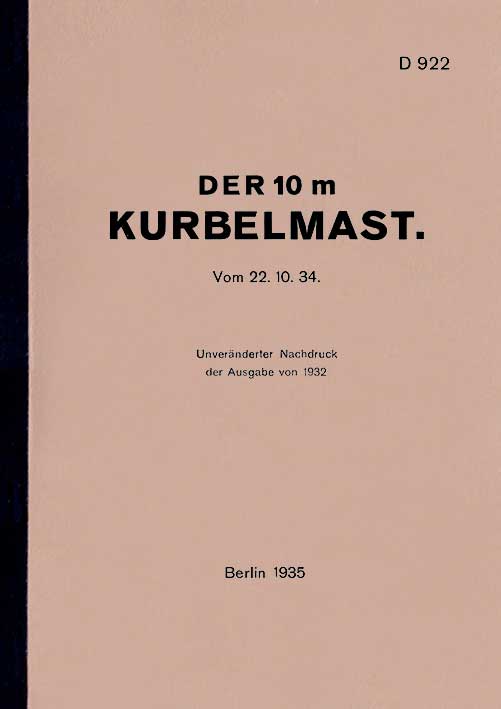 Artikelnummer: 2000922 Dienstvorschrift D 922 Der 10 m Kurbelmast Vom 22.10.1934 Format A5, 24 Seiten, 12 Abbildungen Dienstvorschriften der Wehrmacht sind eine hervorragende Informationsquelle für alle Modellbauer, Fahrzeugsammler und Restauratoren. Alles wird hier ausführlich beschrieben und ist bestens illustriert. Die kaum noch erhältlichen Originaldokumente wurden aufwändig nachbearbeitet und von Verschmutzungen, Rissen, Knicken, Flecken und anderen Spuren der vielen Jahre befreit, bevor der Nachdruck erfolgte. Zum Preis von nur 15,- Euro hier bestellen! |