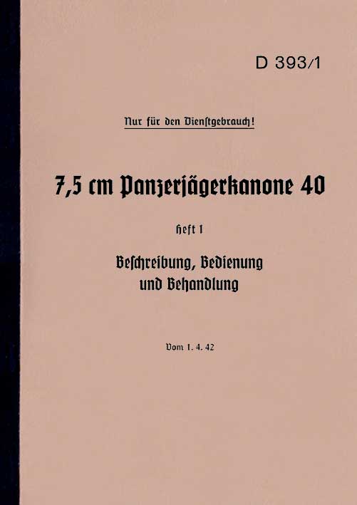 Artikelnummer: 2003931 Dienstvorschrift D 393/1 7,5 cm Panzerjägerkanone 40 Heft 1: Beschreibung, Bedienung und Behandlung Vom 1.04.1942 Format A5, 46 Seiten Dienstvorschriften der Wehrmacht sind eine hervorragende Informationsquelle für alle Modellbauer, Fahrzeugsammler und Restauratoren. Alles wird hier ausführlich beschrieben und ist bestens illustriert. Die kaum noch erhältlichen Originaldokumente wurden aufwändig nachbearbeitet und von Verschmutzungen, Rissen, Knicken, Flecken und anderen Spuren der vielen Jahre befreit, bevor der Nachdruck erfolgte. Zum Preis von nur 17,50 Euro hier bestellen! |