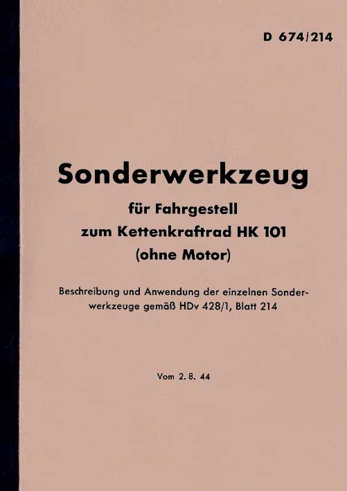 Artikelnummer: 2674214 Dienstvorschrift D 674/214 Kettenkraftrad HK 101 Sonderwerkzeug zum Fahrgestell (ohne Motor) Vom 2.08.1944 Format A5, 27 Seiten, 34 Abbildungen Dienstvorschriften der Wehrmacht sind eine hervorragende Informationsquelle für alle Modellbauer, Fahrzeugsammler und Restauratoren. Alles wird hier ausführlich beschrieben und ist bestens illustriert. Die kaum noch erhältlichen Originaldokumente wurden aufwändig nachbearbeitet und von Verschmutzungen, Rissen, Knicken, Flecken und anderen Spuren der vielen Jahre befreit, bevor der Nachdruck erfolgte. Zum Preis von nur 17,50 Euro hier bestellen! |